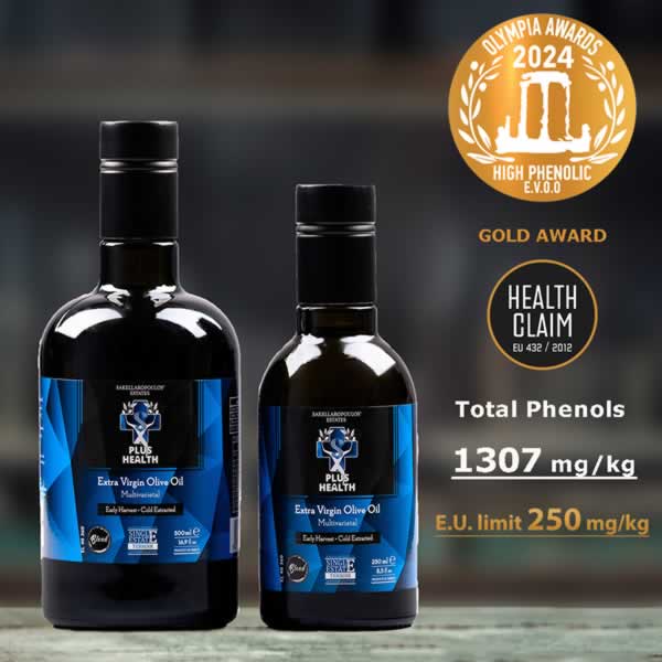 φαινόλες ΑΓΟΥΡΕΛΑΙΟ – Χρυσό & 1563 mg/kg φαινόλες PLUS HEALTH BLUE – Χρυσό & 1307 mg/kg