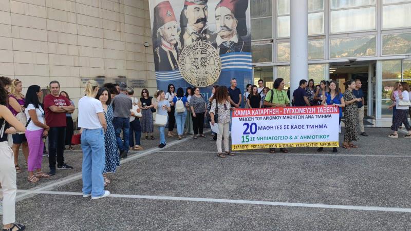 Για τις εκτεταμένες συγχωνεύσεις/συμπτύξεις τμημάτων που πραγματοποιήθηκαν σε πολυθέσιες σχολικές μονάδες της Λακωνίας και την υποβάθμιση ολιγοθέσιων σχολικών μονάδων