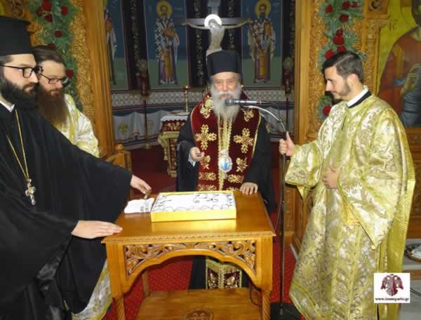 Μετά την χειροθεσία και την Απόλυση, ακολούθησαν η κοπή της Βασιλόπιτας, η διανομή των κομματιών και η ανταλλαγή ευχών σε χαρμόσυνο κλίμα