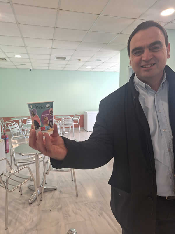 χάρτινα ποτηράκια, τα οποία φέρουν φωτογραφίες από τα αδέσποτα ζώα του