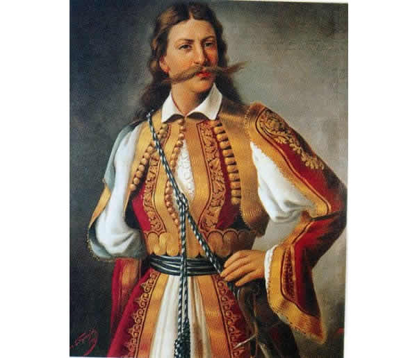 κοντά του (στην αρχή του ανηφορικού μονοπατιού) Κωνσταντίνο Μαυρομιχάλη στην