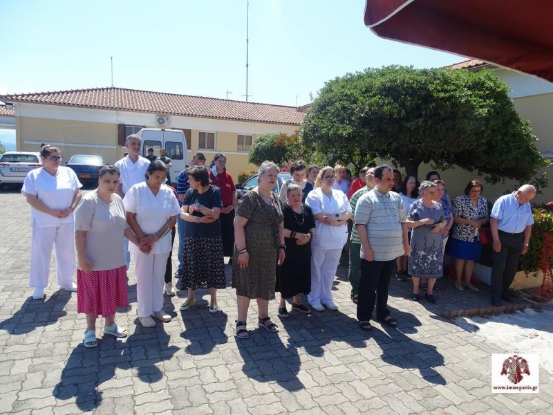 προσωπικό και τρόφιμοι του Ιδρύματος. Ο σεπτός Ποιμενάρχης μας στην σύντομη ομιλία