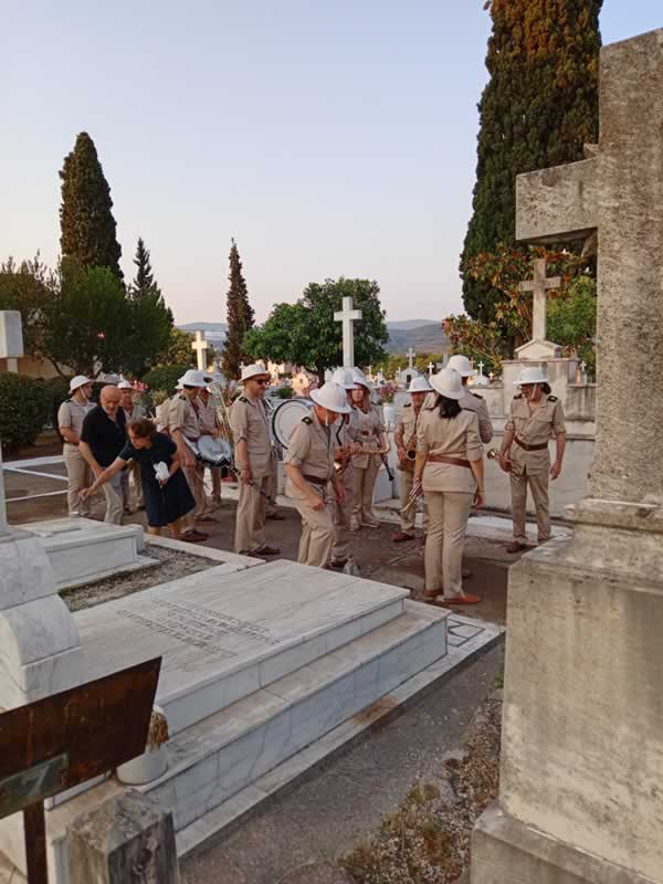 στο χώρο του Κοιμητηρίου συνοδεία της Φιλαρμονικής Δήμου Σπάρτης. Έτσι και