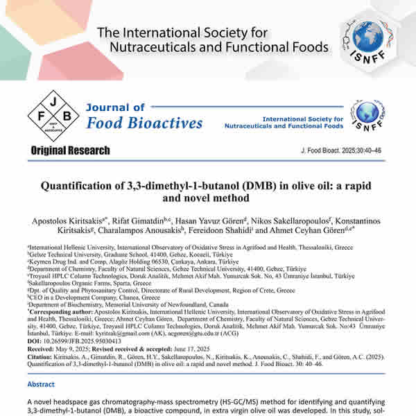 υπό τον γενικό τίτλο «Quantification of 3,3-dimethyl-1-butanol(DMB) in olive