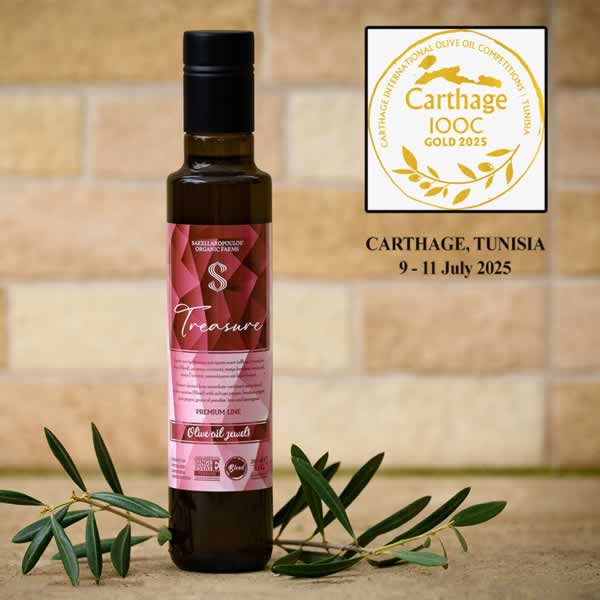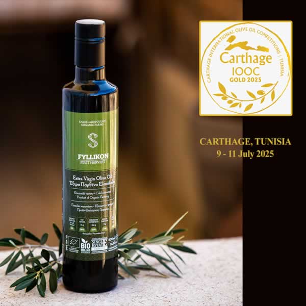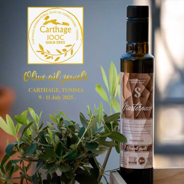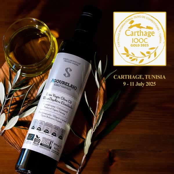 βιολογικούς ελαιώνες Σακελλαρόπουλου, στον διεθνή διαγωνισμό ελαιολάδων Carthage International Olive Oil Competition 2025. Παράλληλα, οι 14 διεθνείς αυτές βραβεύσεις στο