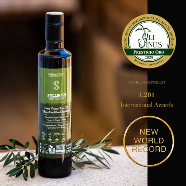 OLIVINUS International Olive Oil Competition 2025 για τους ελαιώνες Σακελλαρόπουλου, είναι: GRAND PRESTIGE GOLD PRESTIGE GOLD FYLLIKON