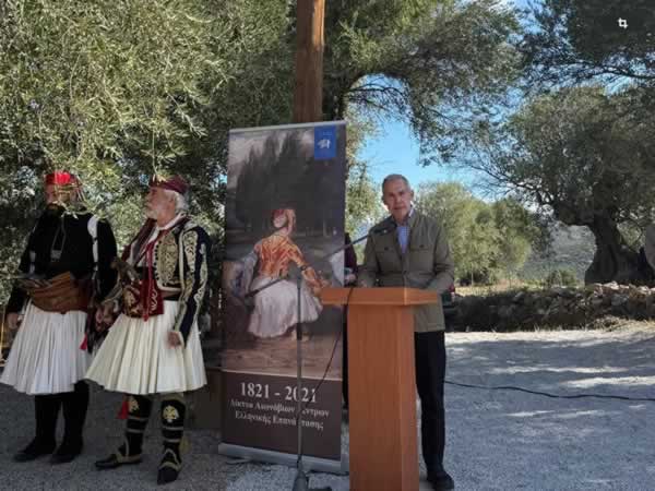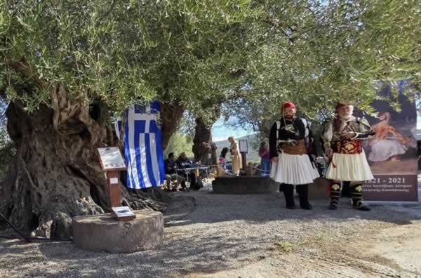 συσχέτιση της μνημειακής ελιάς με την Ελληνική Επανάσταση. Μεταξύ άλλων, τόνισε ότι η μνημειακή ελιά