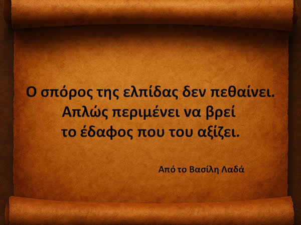 με ανάπτυξη και αντάξια της ιστορίας της. ΓΙΑΤΙ Ο ΣΠΟΡΟΣ ΤΗΣ ΕΛΠΙΔΑΣ ΔΕΝ ΠΕΘΑΙΝΕΙ. ΑΠΛΩΣ ΠΕΡΙΜΕΝΕΙ ΝΑ ΒΡΕΙ ΤΟ ΕΔΑΦΟΣ ΠΟΥ ΤΟΥ