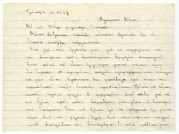 στις 21.11.1943, από τις φυλακές της Τρίπολης, ο ίδιος ο γιατρός Καρβούνης,