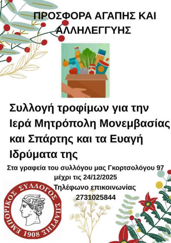 Έως τις 24/12/2025, στα γραφεία του συλλόγου μας