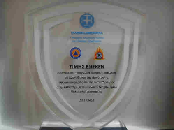 Μηχανισμό Πολιτικής Προστασίας αποτελεί η βράβευση της Πολιτικής Προστασίας του