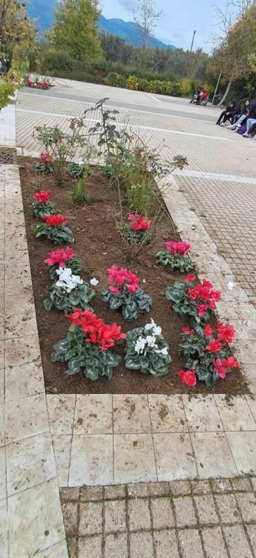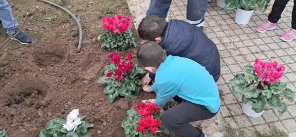 Σχολείου Σπάρτης, φυτεύοντας ελιές και πολύχρωμα κυκλάμινα στα κεντρικά