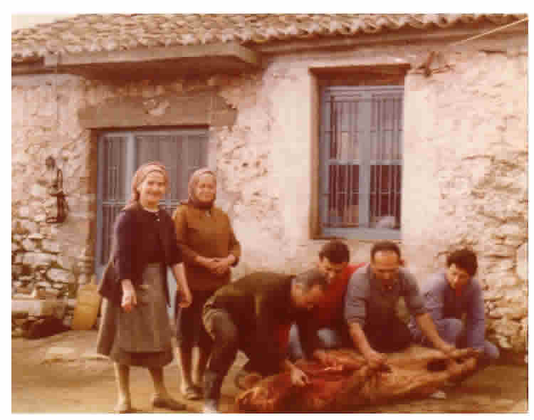ανώγειας οικίας, για να μπορεί ο σφάχτης να το ξετομαριάσει.. Μόλις τελείωνε το γδάρσιμο, σειρά είχε το