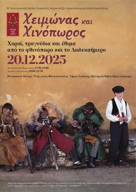 χειμωνιάτικη, και όχι καλοκαιρινή, θεματική παράσταση! Η Λαογραφική Ομάδα Λακωνίας σας προσκαλεί στο