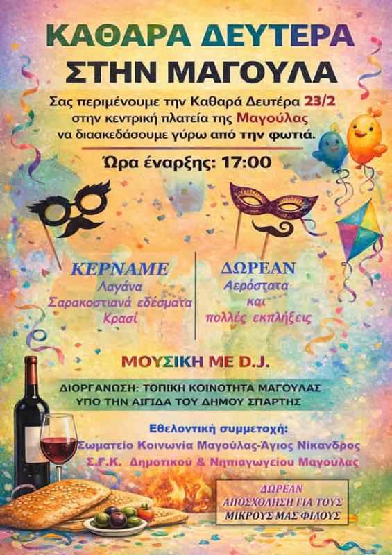 Σπάρτης σας προσκαλούν την Καθαρά Δευτέρα 23 Φεβρουαρίου από τις 17:00 και μετά