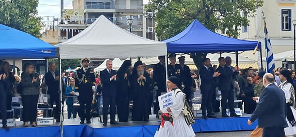 η κατάθεση στεφάνων και ακολούθησε η καθιερωμένη μαθητική παρέλαση. Στον Μυστρά, μετά τη δοξολογία και την
