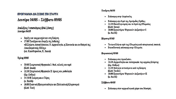 Summer School dedicated to ancient Sparta 27 April – 9 May 2026» Το Θερινό Σχολείο για την Αρχαία Σπάρτη θα